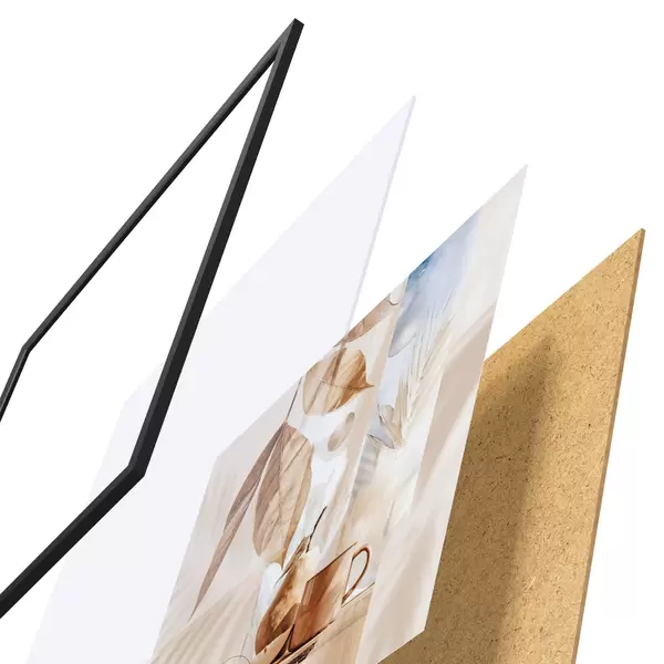 Plakat składa się z ramy, pleksi, wydrukowanego obrazu i podkładu z płyty wiórowej. Plakat można natychmiast zawiesić na ścianie dzięki uchwytom z tyłu.