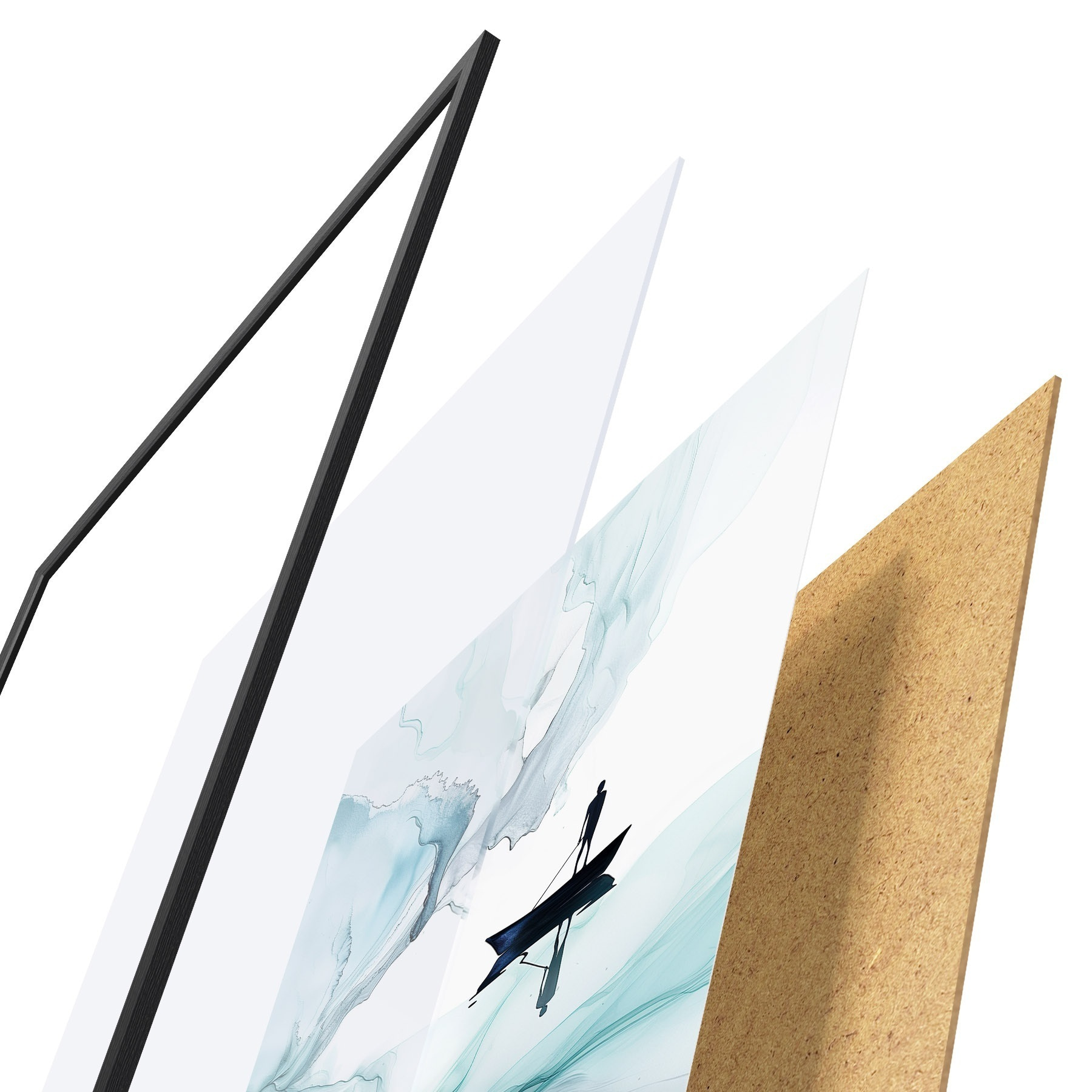 Plakat składa się z ramy, pleksi, wydrukowanego obrazu i podkładu z płyty wiórowej. Plakat można natychmiast zawiesić na ścianie dzięki uchwytom z tyłu.
