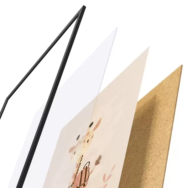 Plakat składa się z ramy, pleksi, wydrukowanego obrazu i podkładu z płyty wiórowej. Plakat można natychmiast zawiesić na ścianie dzięki uchwytom z tyłu.