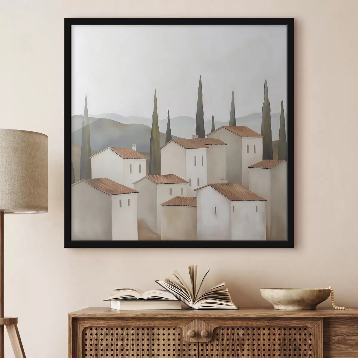 Plakat składa się z ramy, pleksi, wydrukowanego obrazu i podkładu z płyty wiórowej. Plakat można natychmiast zawiesić na ścianie dzięki uchwytom z tyłu.