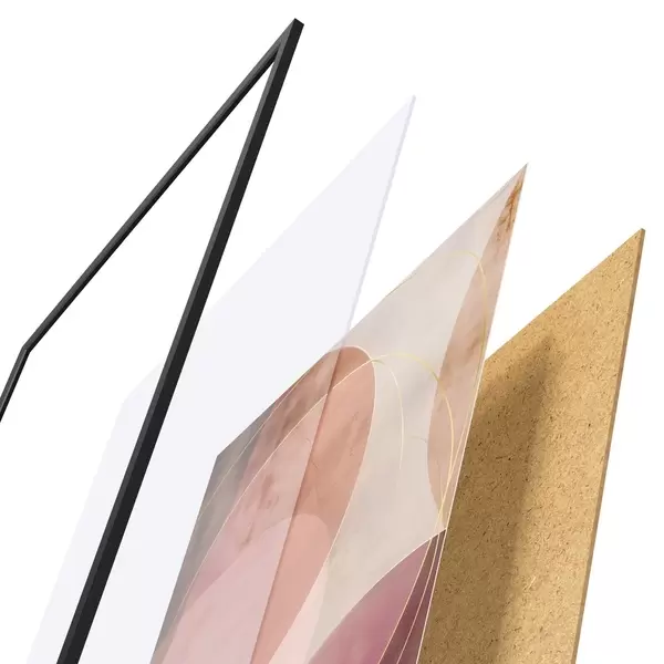 Plakat składa się z ramy, pleksi, wydrukowanego obrazu i podkładu z płyty wiórowej. Plakat można natychmiast zawiesić na ścianie dzięki uchwytom z tyłu.