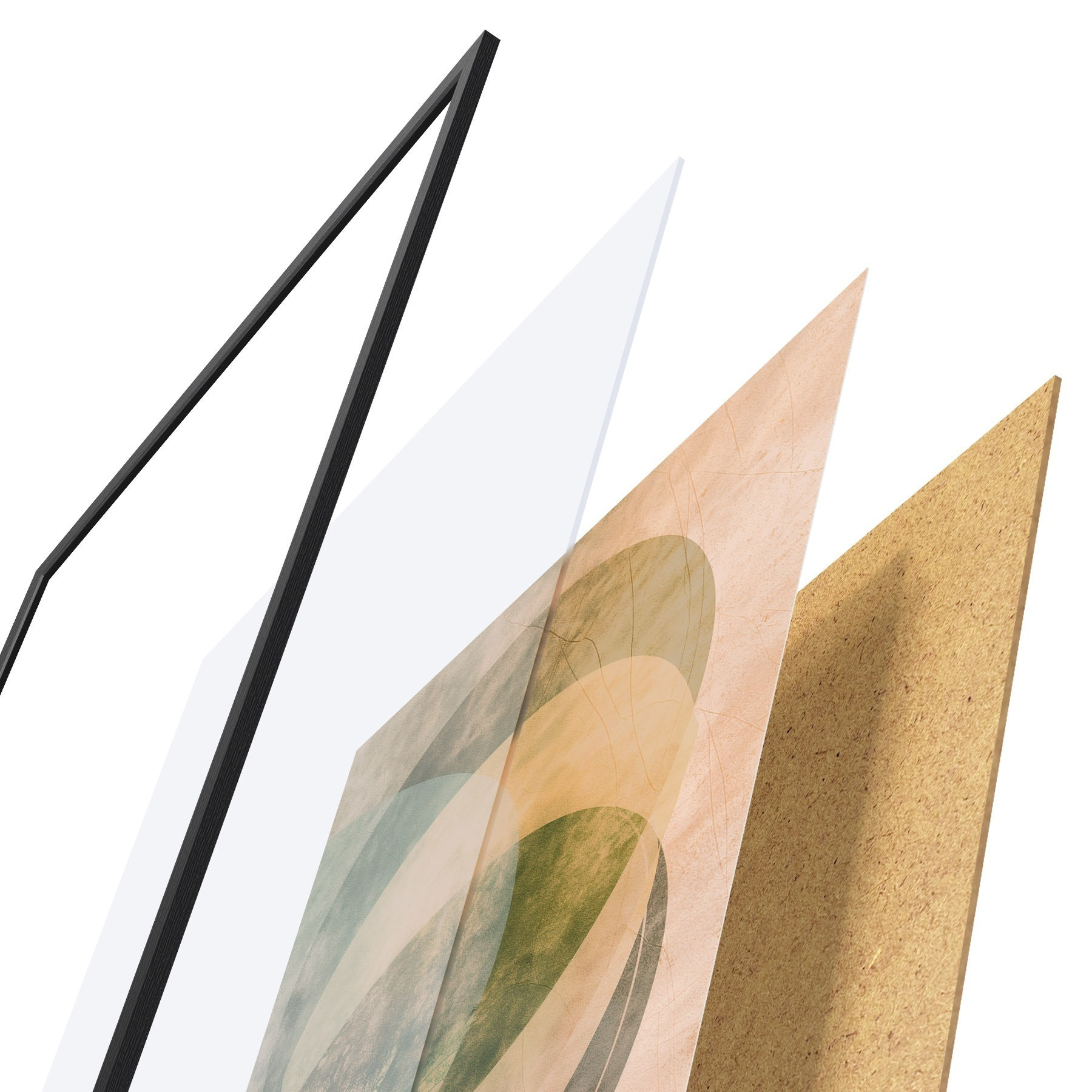 Plakat składa się z ramy, pleksi, wydrukowanego obrazu i podkładu z płyty wiórowej. Plakat można natychmiast zawiesić na ścianie dzięki uchwytom z tyłu.