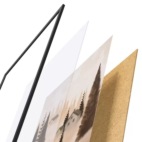 Plakat składa się z ramy, pleksi, wydrukowanego obrazu i podkładu z płyty wiórowej. Plakat można natychmiast zawiesić na ścianie dzięki uchwytom z tyłu.