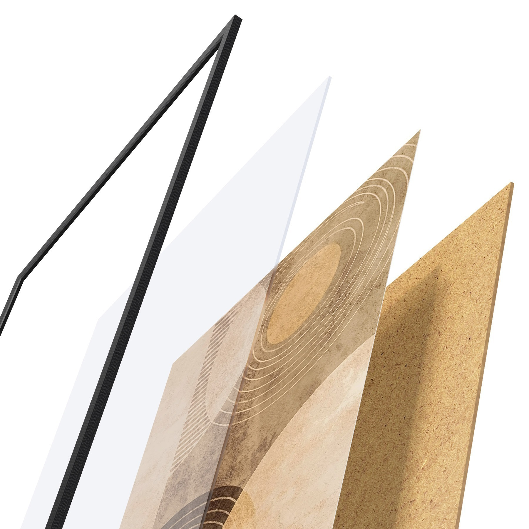 Plakat składa się z ramy, pleksi, wydrukowanego obrazu i podkładu z płyty wiórowej. Plakat można natychmiast zawiesić na ścianie dzięki uchwytom z tyłu.