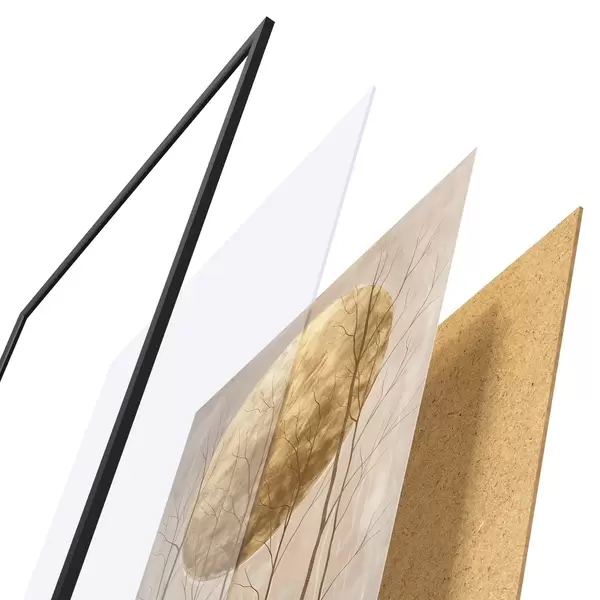 Plakat składa się z ramy, pleksi, wydrukowanego obrazu i podkładu z płyty wiórowej. Plakat można natychmiast zawiesić na ścianie dzięki uchwytom z tyłu.