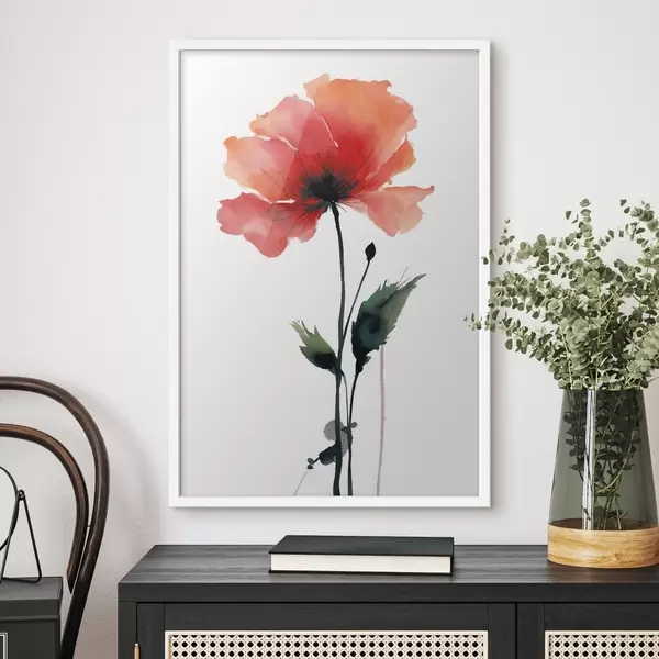 Plakat Akwarelowy mak w spokojnej palecie barw z delikatnymi przejściami kolorów f47087