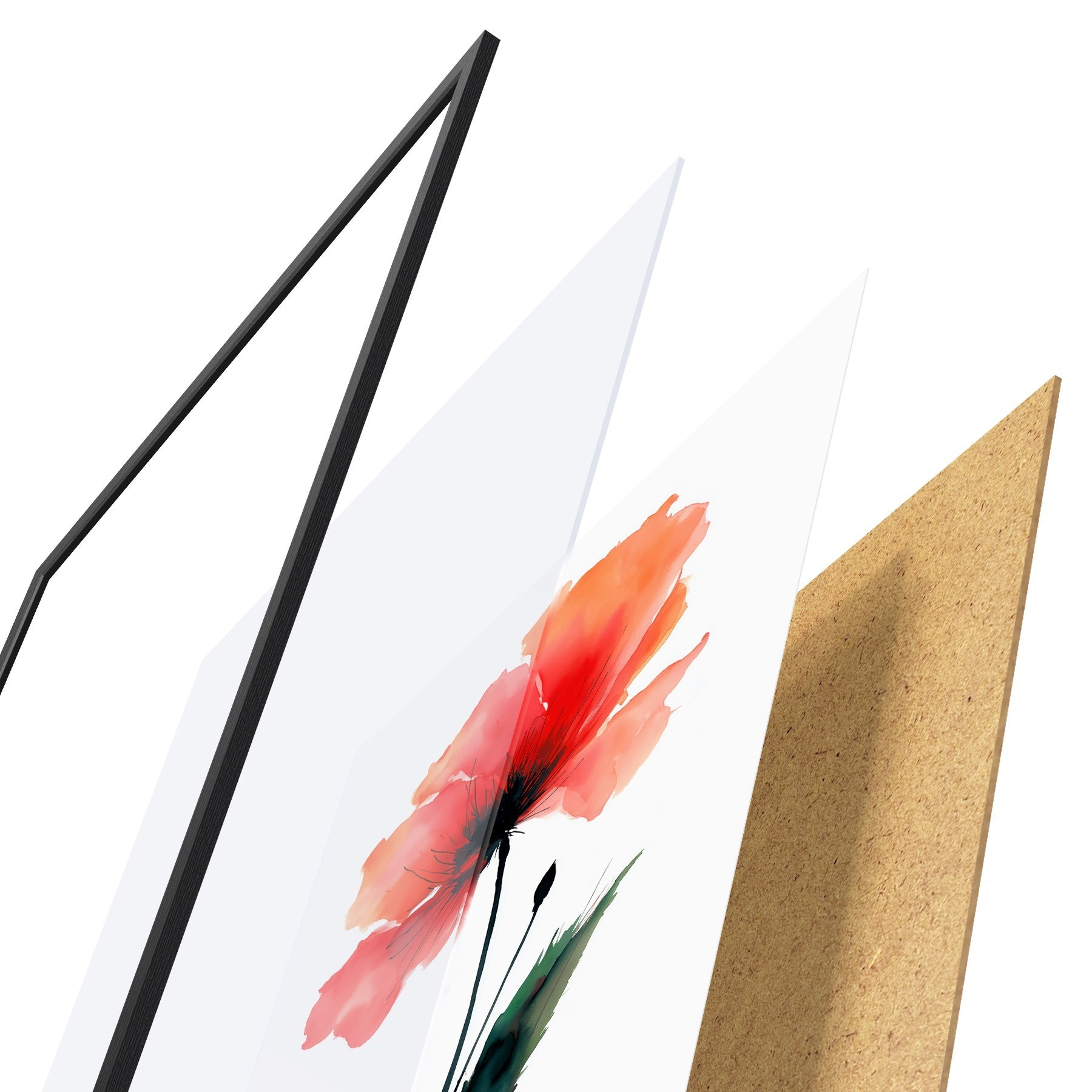 Plakat składa się z ramy, pleksi, wydrukowanego obrazu i podkładu z płyty wiórowej. Plakat można natychmiast zawiesić na ścianie dzięki uchwytom z tyłu.
