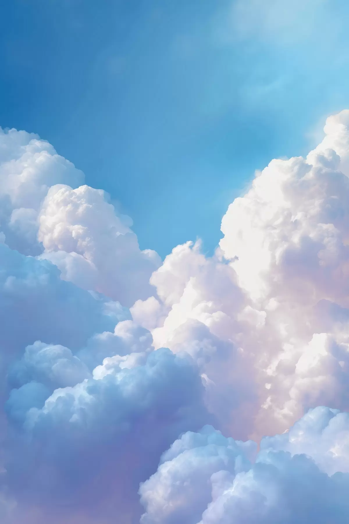 Poster Malowniczy krajobraz nieba z ogromnymi białymi chmurami w stylu grafiki cyfrowej Nr f47089