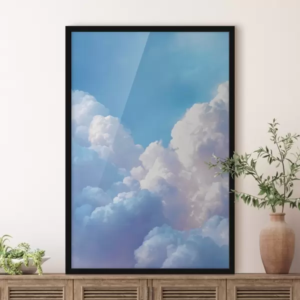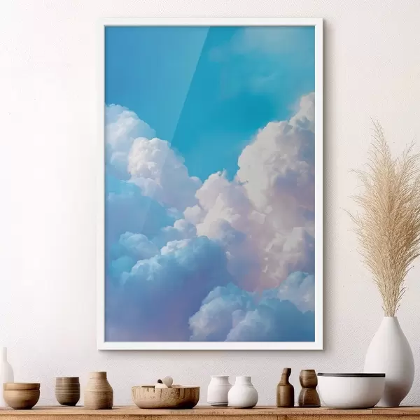 Plakat Malowniczy krajobraz nieba z ogromnymi białymi chmurami w stylu grafiki cyfrowej f47089