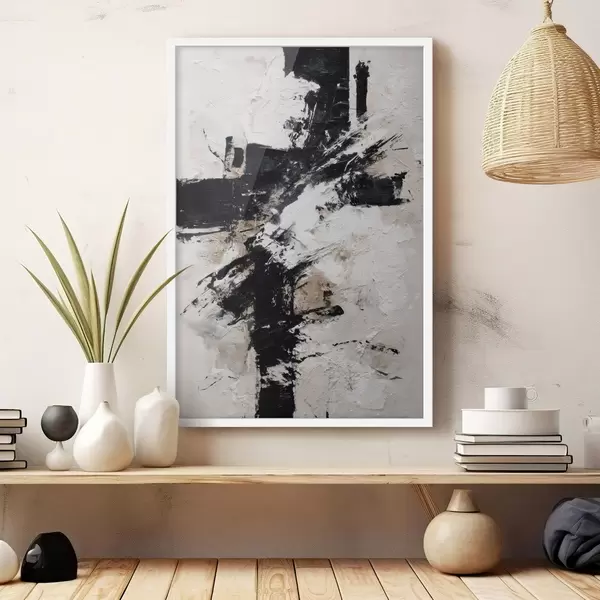 Poster Nowoczesne wnętrze abstrakcyjne z chaotycznymi liniami i objętościowymi pociągnięciami pędzla w stylu malarstwa na płótnie Nr f47090