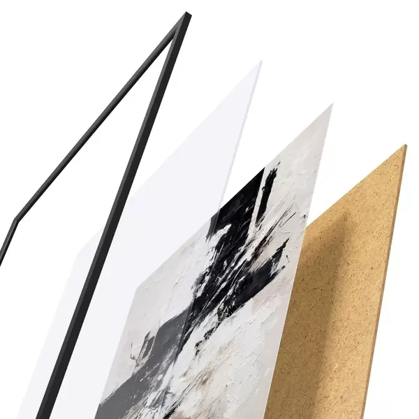Plakat składa się z ramy, pleksi, wydrukowanego obrazu i podkładu z płyty wiórowej. Plakat można natychmiast zawiesić na ścianie dzięki uchwytom z tyłu.