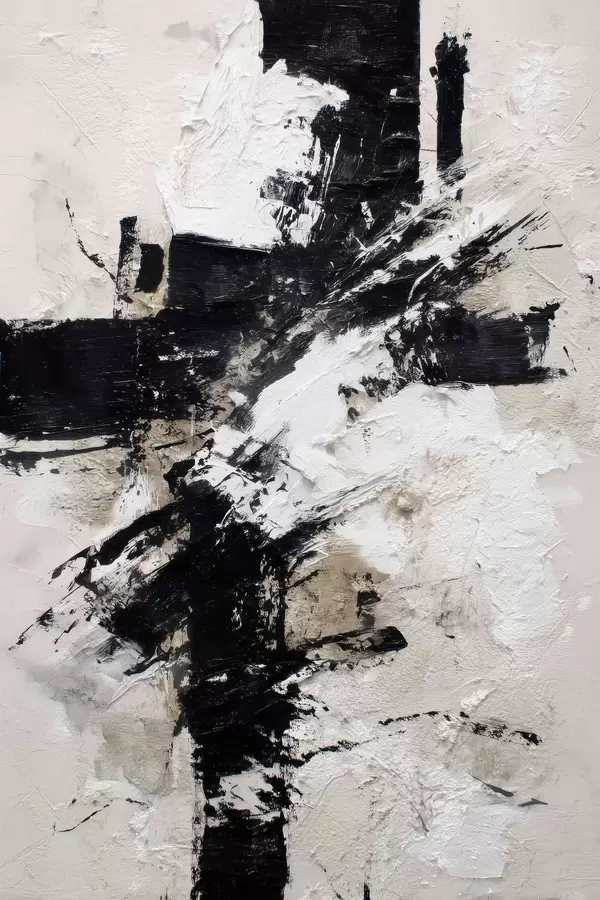 Poster Nowoczesne wnętrze abstrakcyjne z chaotycznymi liniami i objętościowymi pociągnięciami pędzla w stylu malarstwa na płótnie Nr f47090