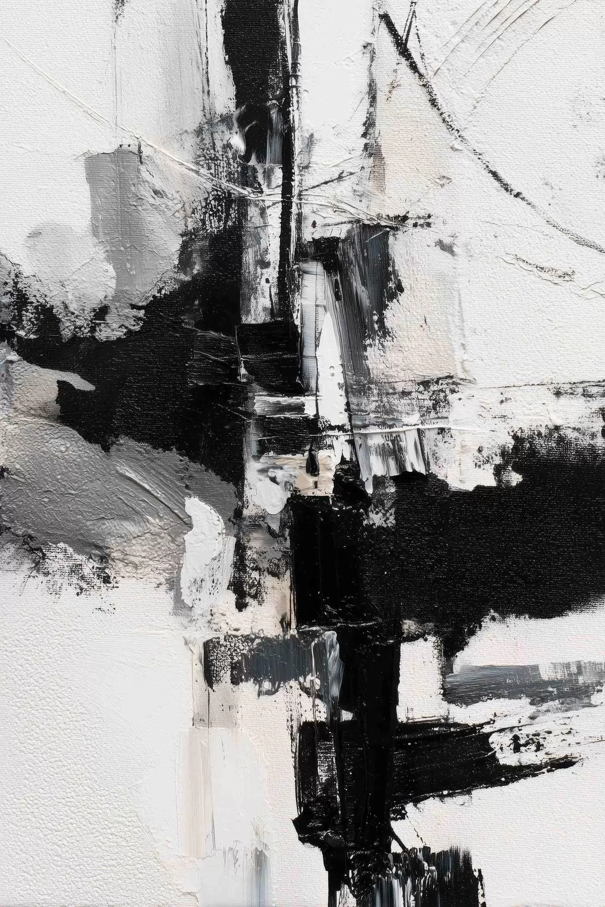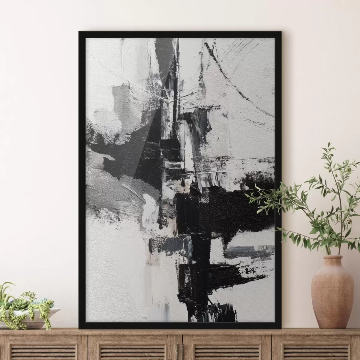Poster Teksturowana ilustracja z kontrastującymi czarnymi i szarymi pociągnięciami pędzla w stylu malarstwa olejnego. Nr f47091