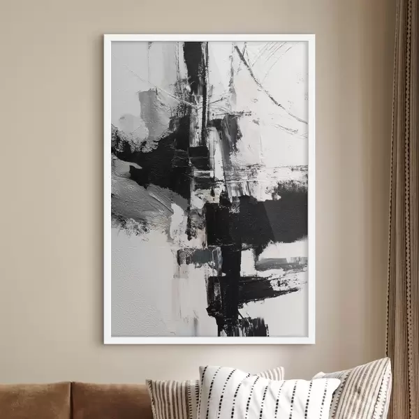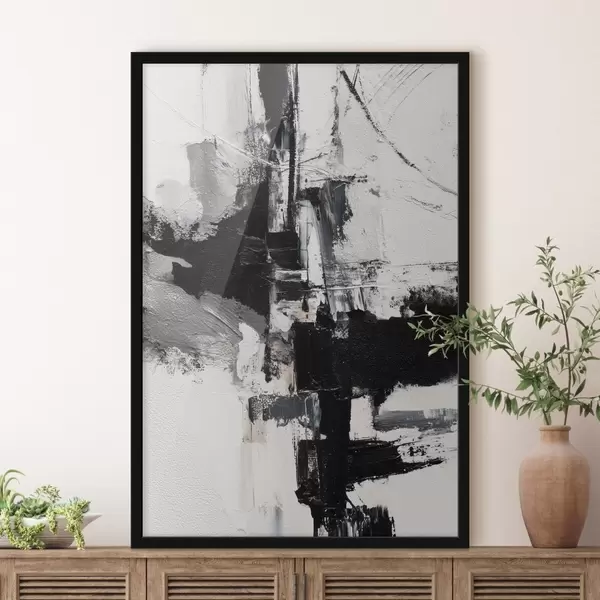 Plakat Teksturowana ilustracja z kontrastującymi czarnymi i szarymi pociągnięciami pędzla w stylu malarstwa olejnego. f47091