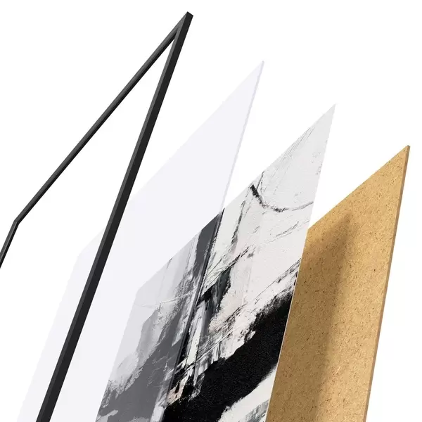 Plakat składa się z ramy, pleksi, wydrukowanego obrazu i podkładu z płyty wiórowej. Plakat można natychmiast zawiesić na ścianie dzięki uchwytom z tyłu.