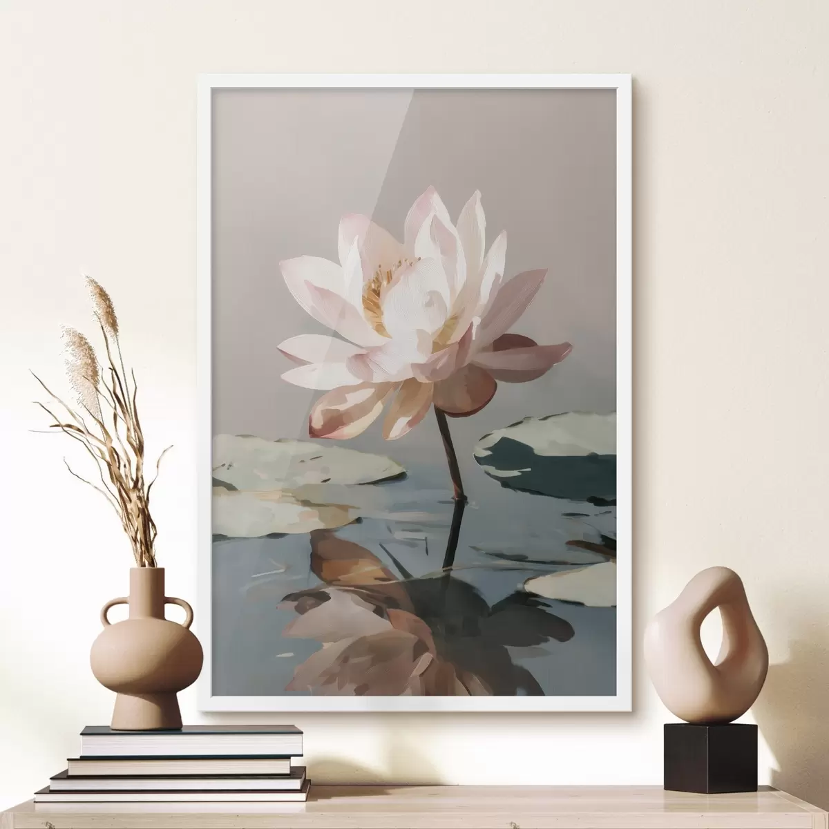 Plakat Biały lotos na pastelowym tle w stylu malarstwa olejnego f47093