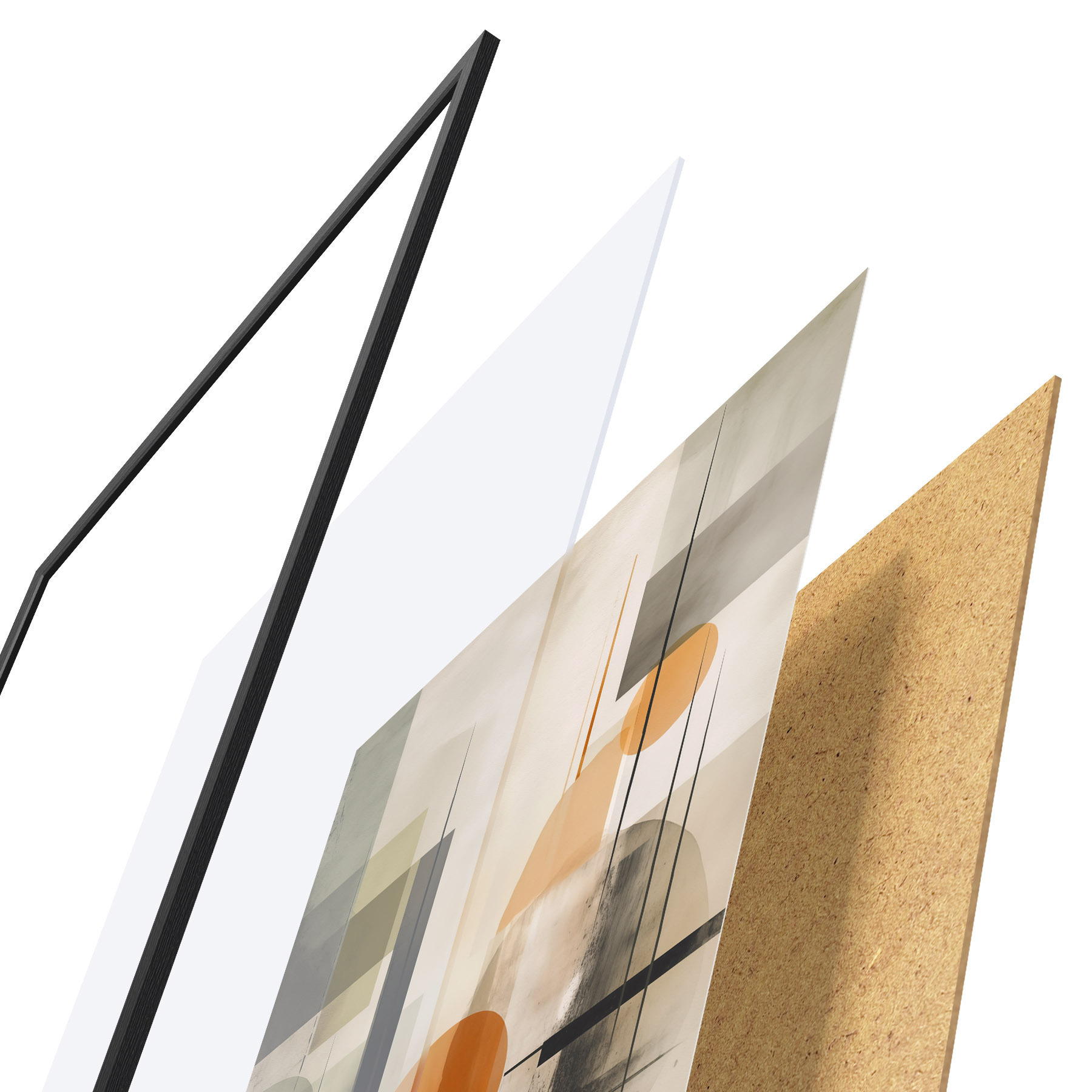 Plakat składa się z ramy, pleksi, wydrukowanego obrazu i podkładu z płyty wiórowej. Plakat można natychmiast zawiesić na ścianie dzięki uchwytom z tyłu.