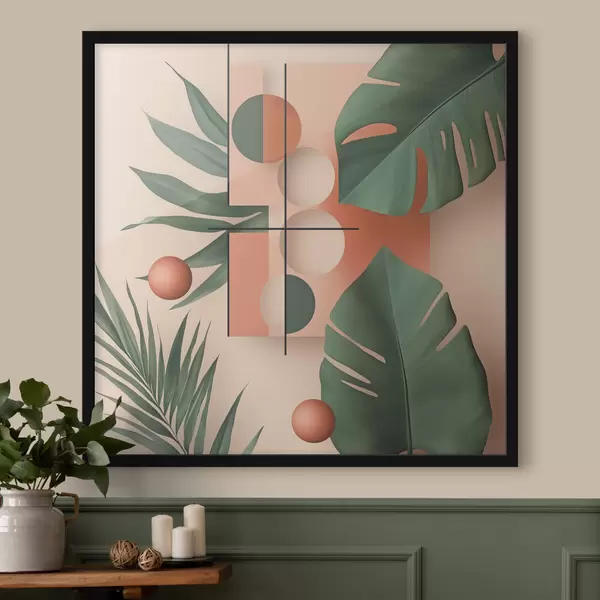 Poster Abstrakcja z dużymi tropikalnymi liśćmi Nr f47099