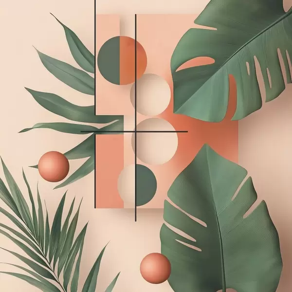 Poster Abstrakcja z dużymi tropikalnymi liśćmi Nr f47099