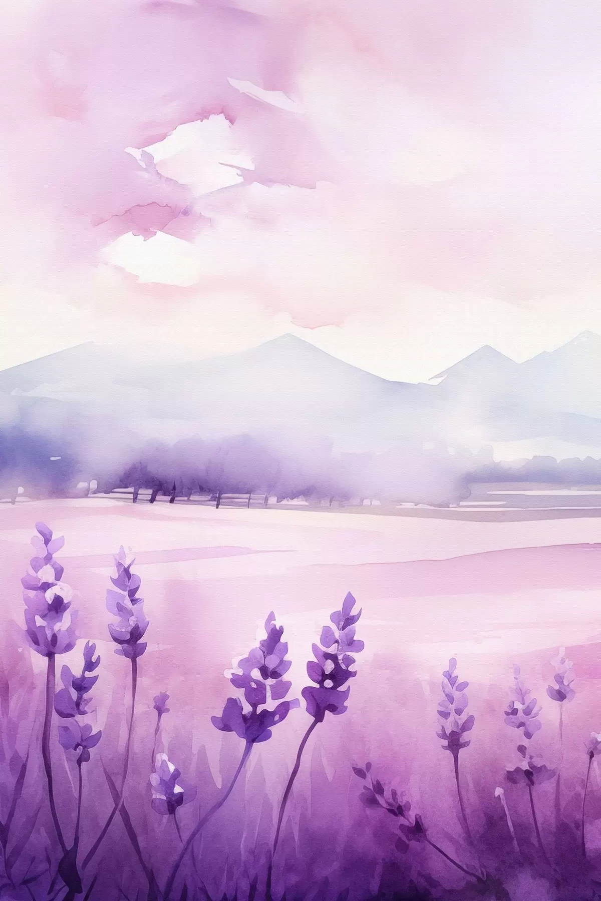 Plakat Kwiaty lawendy, imitacja akwareli f47108