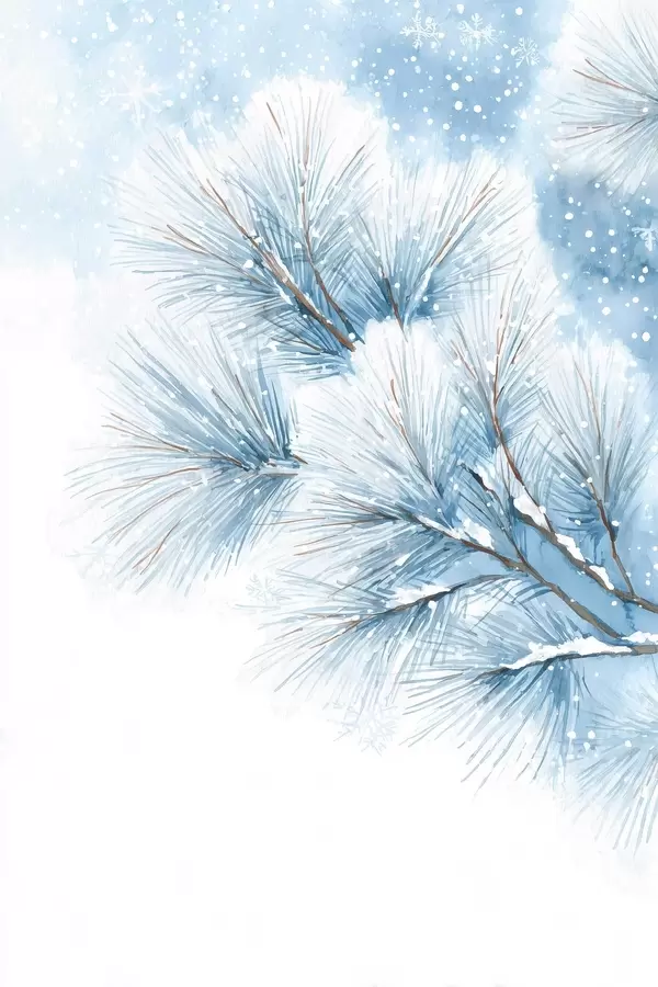 Poster pokryta śniegiem gałąź sosny w stylu akwareli Nr f47114