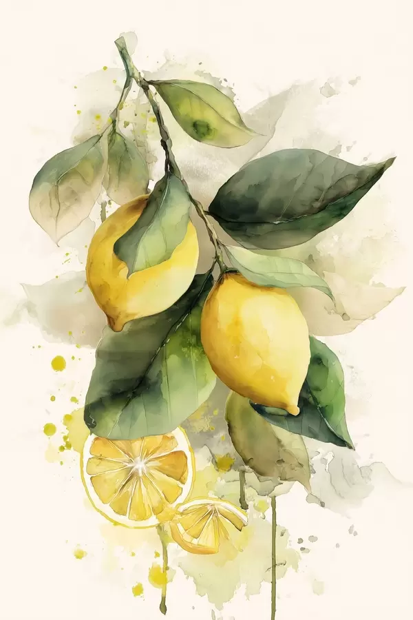 Poster gałąź w stylu akwareli z cytrynami Nr f47123
