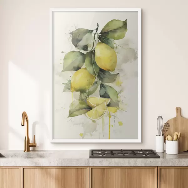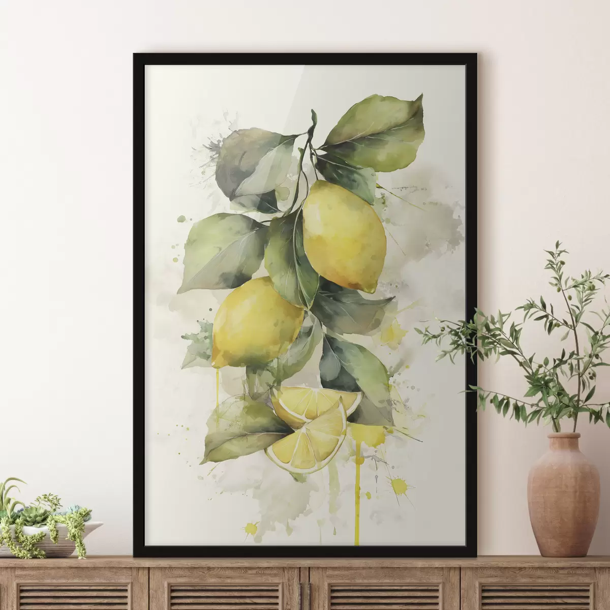 Poster gałąź w stylu akwareli z cytrynami Nr f47124