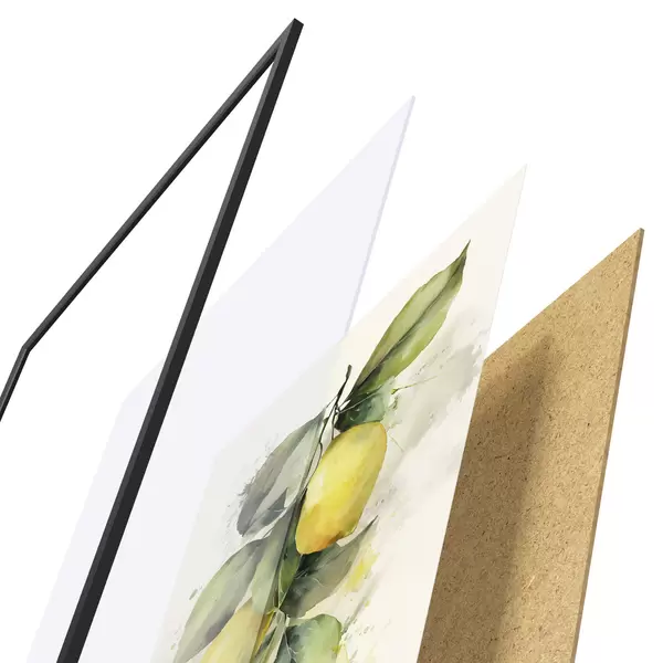 Plakat składa się z ramy, pleksi, wydrukowanego obrazu i podkładu z płyty wiórowej. Plakat można natychmiast zawiesić na ścianie dzięki uchwytom z tyłu.