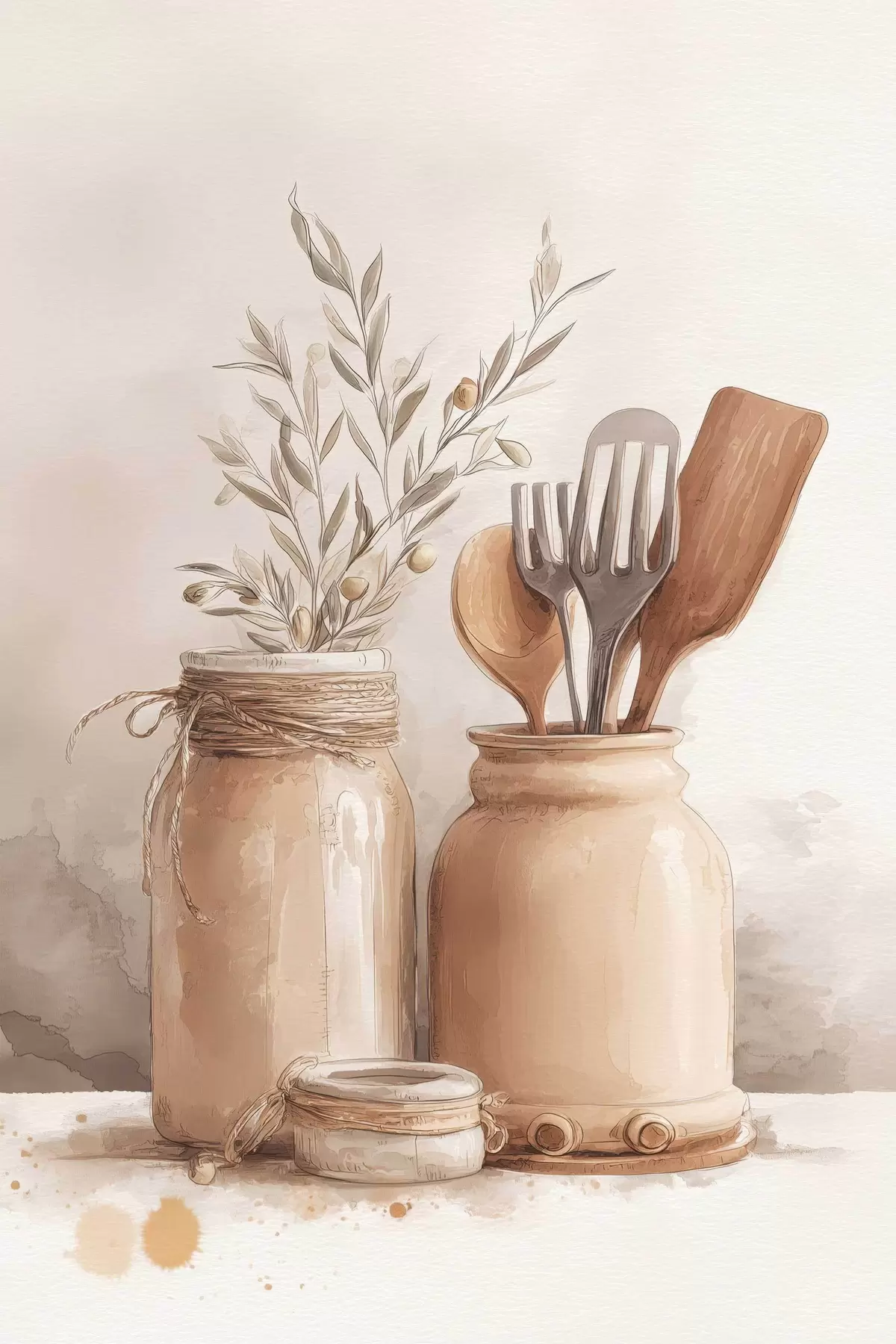 Poster martwa natura w kuchni w stylu akwareli Nr f47125