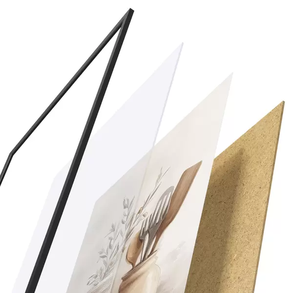 Plakat składa się z ramy, pleksi, wydrukowanego obrazu i podkładu z płyty wiórowej. Plakat można natychmiast zawiesić na ścianie dzięki uchwytom z tyłu.
