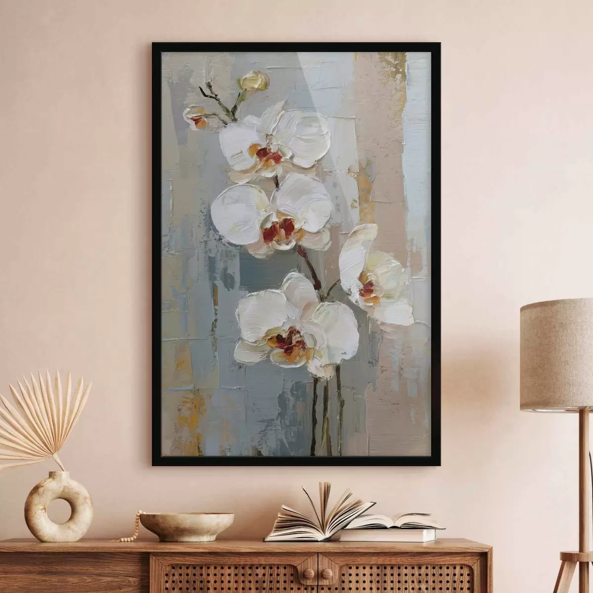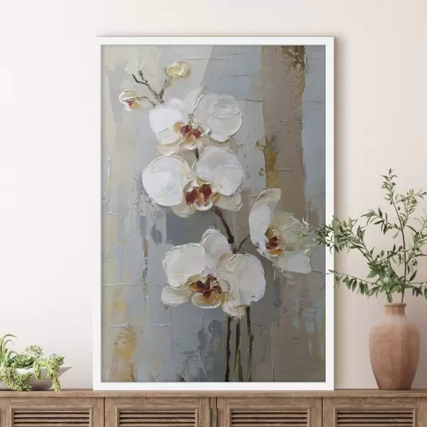 Poster białe kwiaty orchidei w stylu malarstwa olejnego Nr f47132