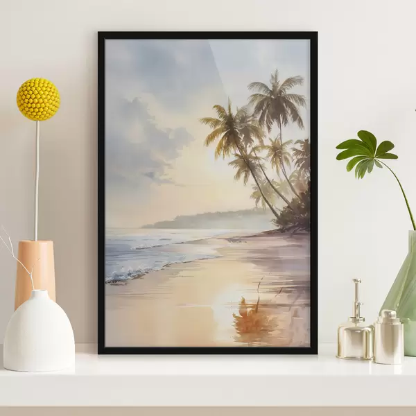 Poster plaża o zachodzie słońca na wyspie w stylu akwareli Nr f47135
