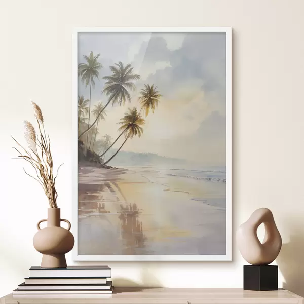 Poster plaża o zachodzie słońca na wyspie w stylu akwareli Nr f47136