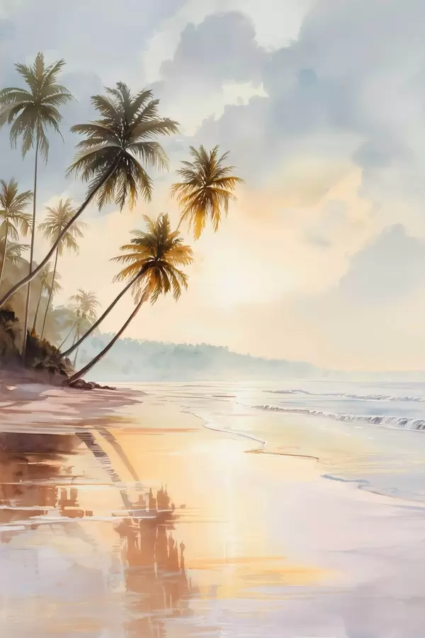 Poster plaża o zachodzie słońca na wyspie w stylu akwareli Nr f47136