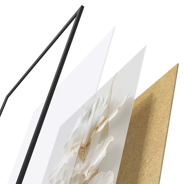 Plakat składa się z ramy, pleksi, wydrukowanego obrazu i podkładu z płyty wiórowej. Plakat można natychmiast zawiesić na ścianie dzięki uchwytom z tyłu.