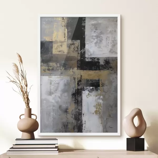 Plakat współczesna abstrakcja teksturalna w odcieniach czerni, szarości i bieli f47139