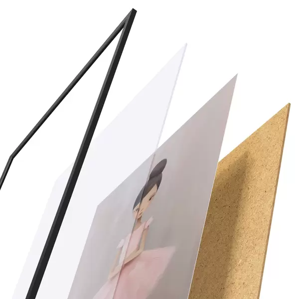 Plakat składa się z ramy, pleksi, wydrukowanego obrazu i podkładu z płyty wiórowej. Plakat można natychmiast zawiesić na ścianie dzięki uchwytom z tyłu.