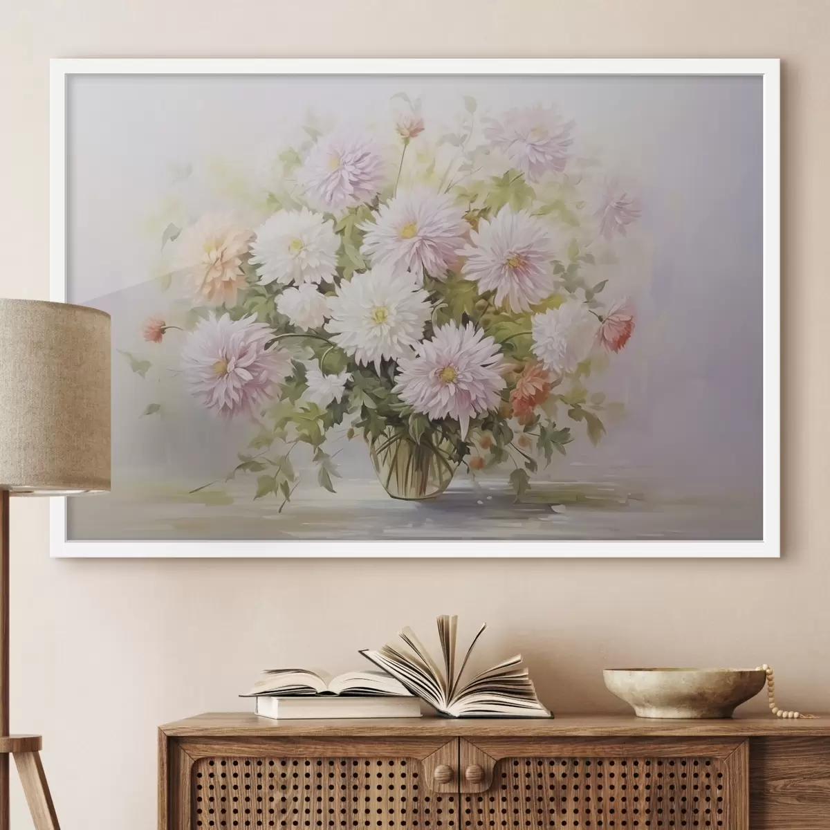 Sprzedajemy obrazy na blejtramie - jest to drewniana rama, na którą naciągnięte jest płótno. Tego obrazu nie trzeba oprawiać; można go powiesić bezpośrednio na ścianie.