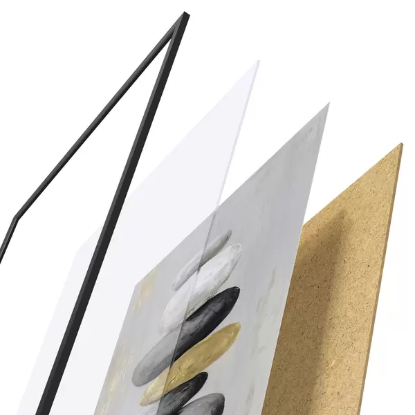 Plakat składa się z ramy, pleksi, wydrukowanego obrazu i podkładu z płyty wiórowej. Plakat można natychmiast zawiesić na ścianie dzięki uchwytom z tyłu.