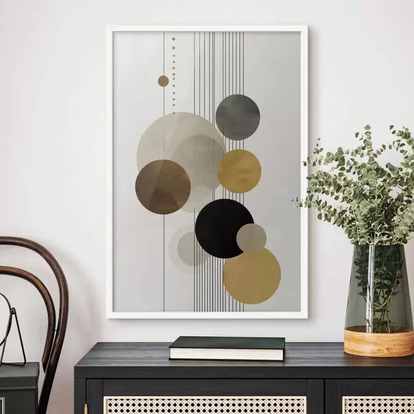 Poster abstrakcja z okręgami i liniami w ciepłych kolorach Nr f47237