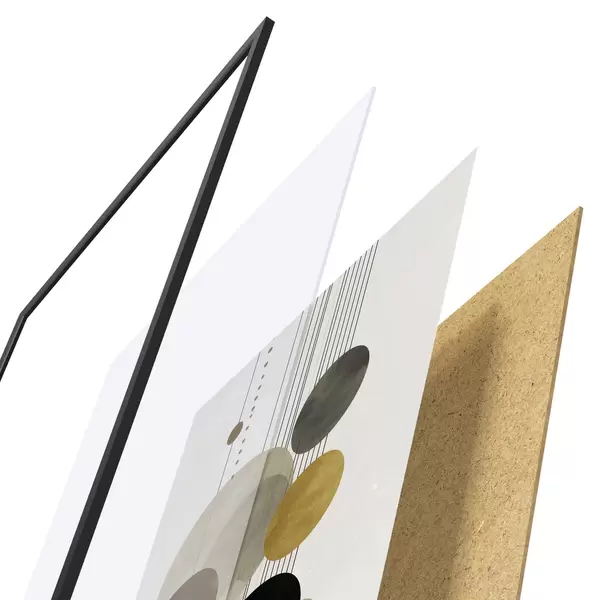 Plakat składa się z ramy, pleksi, wydrukowanego obrazu i podkładu z płyty wiórowej. Plakat można natychmiast zawiesić na ścianie dzięki uchwytom z tyłu.