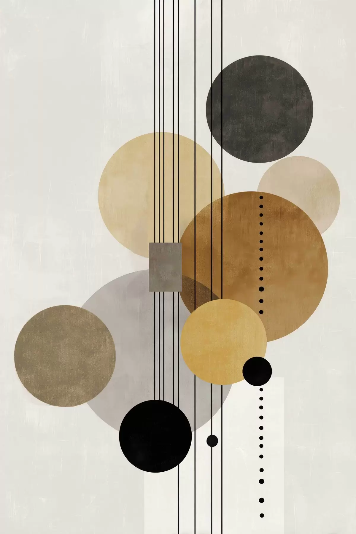 Poster abstrakcja z okręgami i liniami w ciepłych kolorach Nr f47238