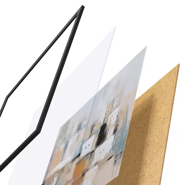 Plakat składa się z ramy, pleksi, wydrukowanego obrazu i podkładu z płyty wiórowej. Plakat można natychmiast zawiesić na ścianie dzięki uchwytom z tyłu.