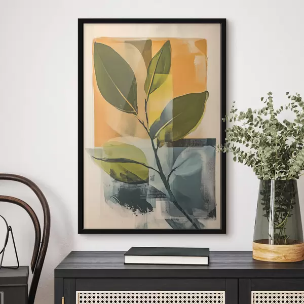 Poster Gałąź liści na abstrakcyjnym tle Nr f47250