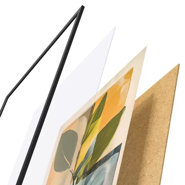 Plakat składa się z ramy, pleksi, wydrukowanego obrazu i podkładu z płyty wiórowej. Plakat można natychmiast zawiesić na ścianie dzięki uchwytom z tyłu.