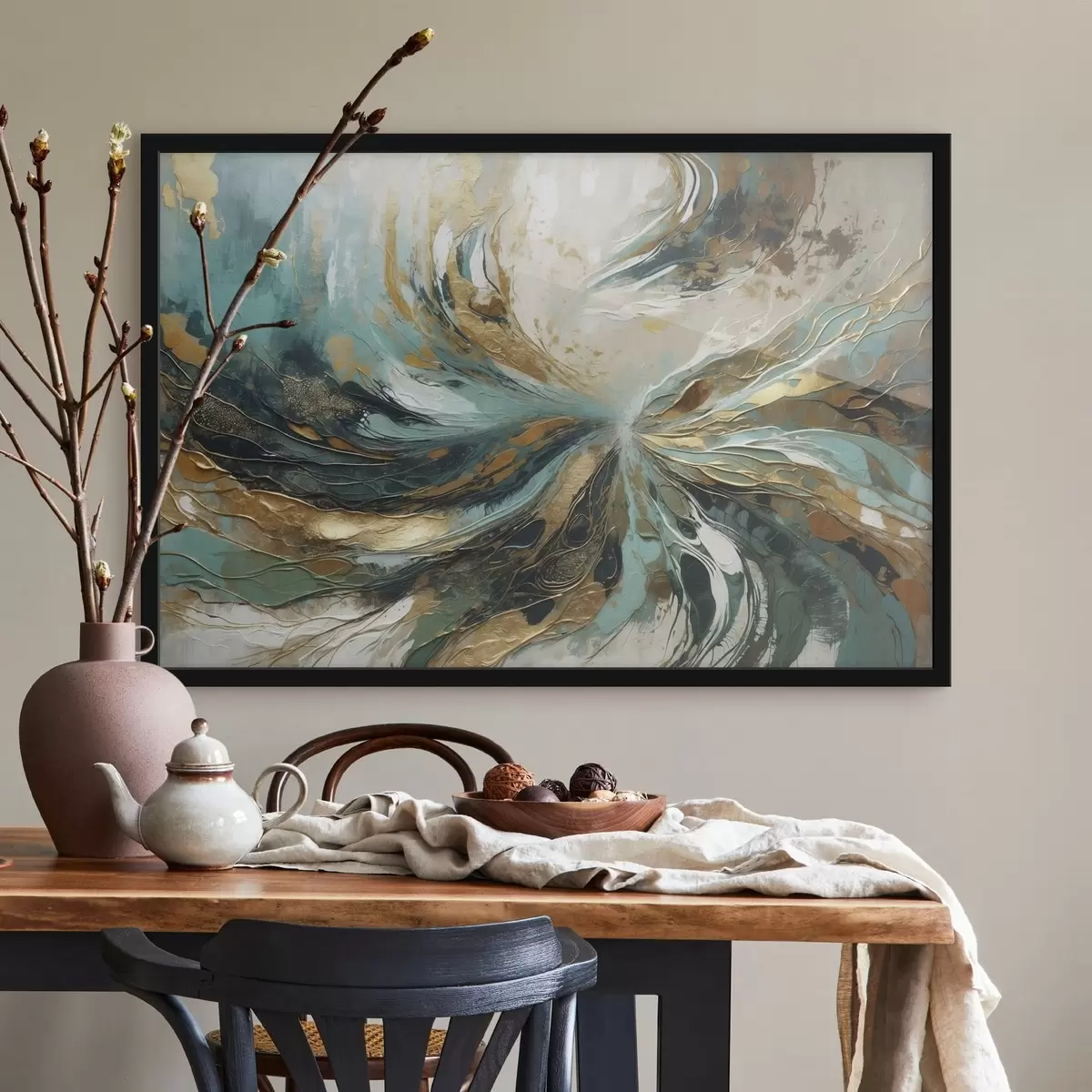 Poster Turkusowa abstrakcja z liniami Nr f47258