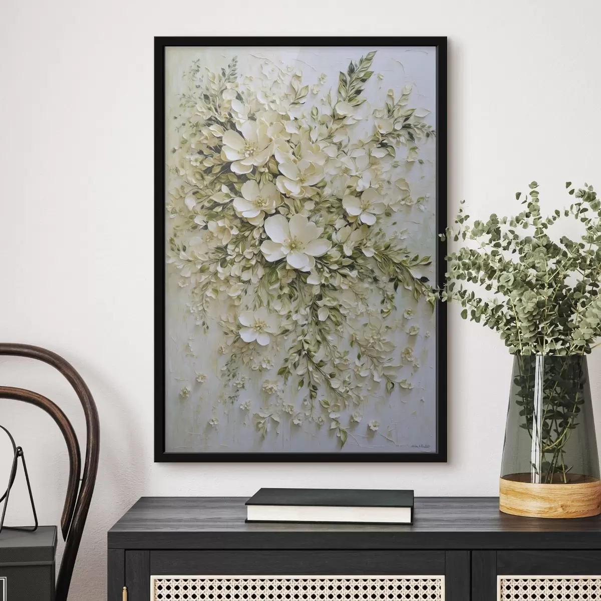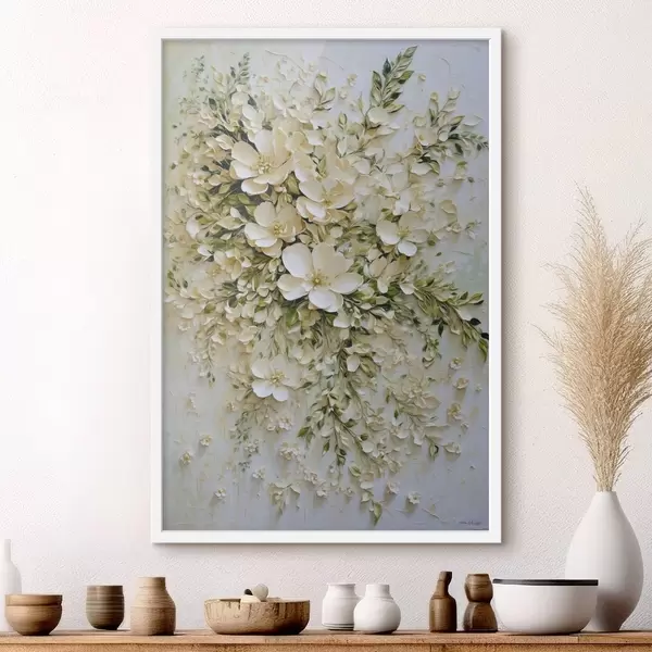 Poster Duża kompozycja z kremowych kwiatów i liści Nr f47267