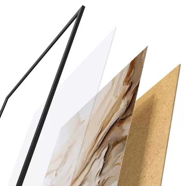 Plakat składa się z ramy, pleksi, wydrukowanego obrazu i podkładu z płyty wiórowej. Plakat można natychmiast zawiesić na ścianie dzięki uchwytom z tyłu.