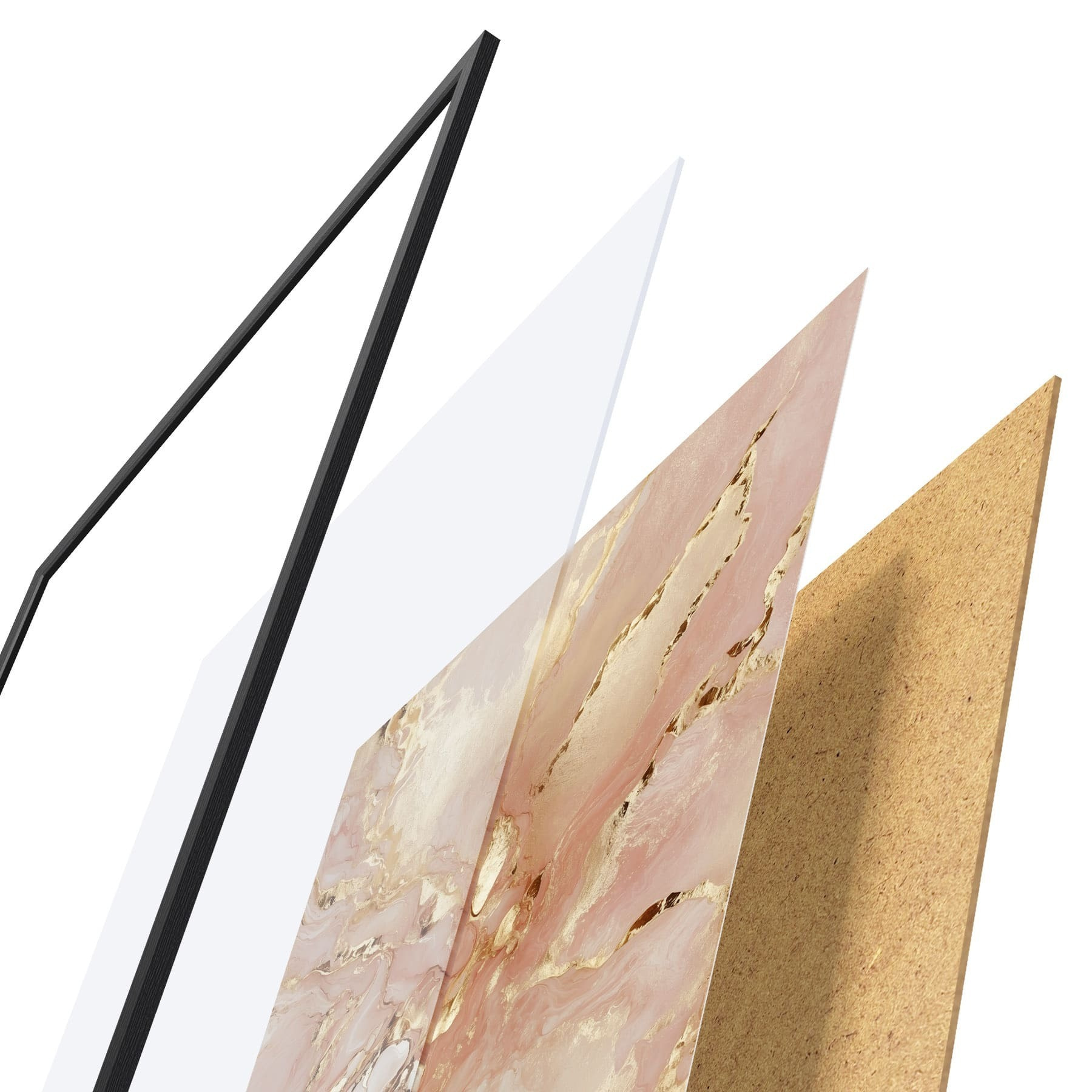 Plakat składa się z ramy, pleksi, wydrukowanego obrazu i podkładu z płyty wiórowej. Plakat można natychmiast zawiesić na ścianie dzięki uchwytom z tyłu.