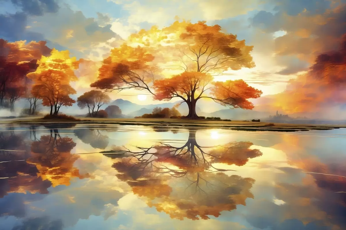 Plakat Żywe drzewa odbijające się w wodzie f47287